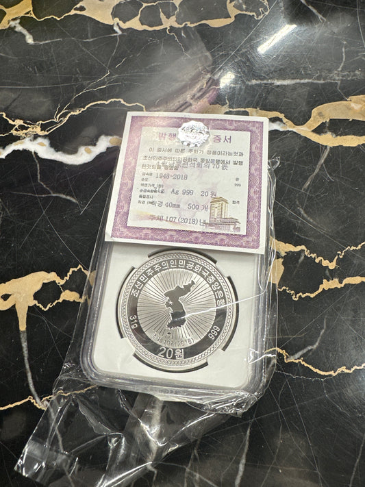 2018 PCGS DPRK 🇰🇵 Pyongyang Joint Meeting 70th Anniversary 1 oz .999 SILVER PF69 Ultra Cameo