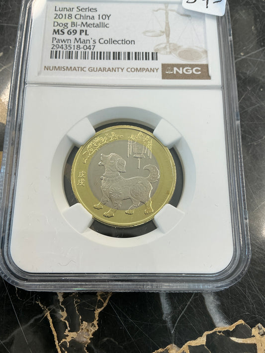 2018 China 10Y Lunar Series Dog NGC MS69PL PAWN MAN'S COLLECTION