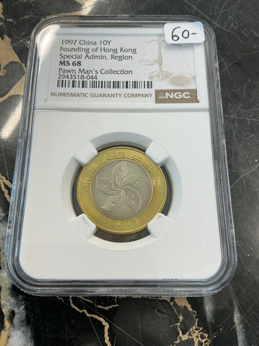 1997 China 10Y Founding of Hong Kong Special Admin Region NGC MS 68 PAWN MAN'S COLLECTION