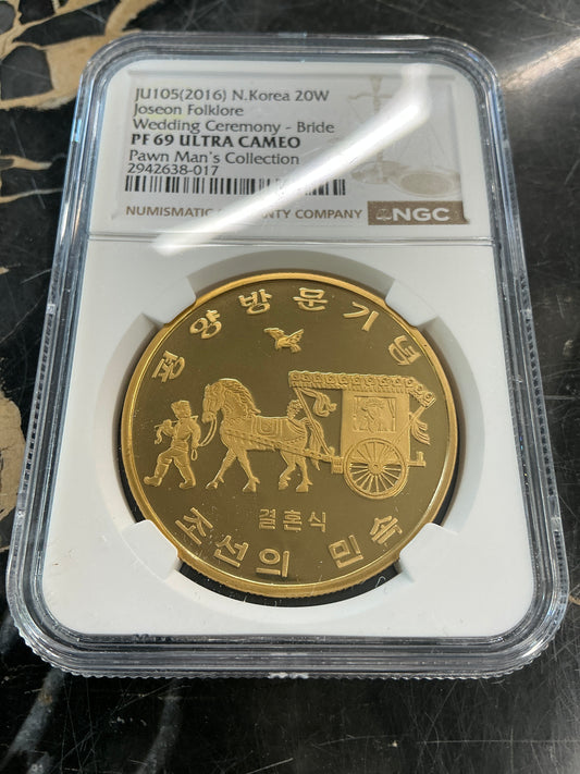 PF69 Ultra Cameo N. Korea (2016) 20 Won Joseon Folklore- Wedding Ceremony -Bride