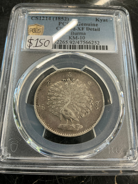 Burma Kyat PCGS Slabbed Cleaned-XF-Detail
