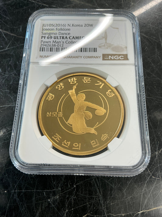 PF69 Ultra Cameo N. Korea (2016) 20 Won Joseon Folklore- Sangmo Dance
