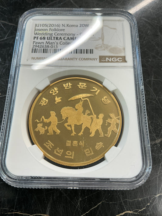 PF68 Ultra Cameo (2016) N. Korea 20 Won Joseon Folklore- Wedding Ceremony Groom