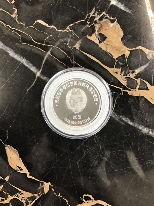 2015 DPRK 🇰🇵 Wildlife Elephant Aluminum Proof 20 Won Coin