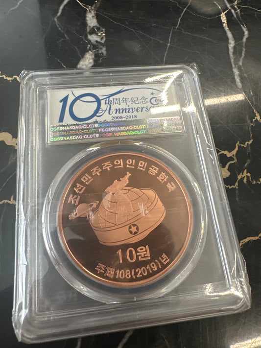 2019 PCGS DPRK 🇰🇵 PR70DCAM COPPER -DEFENSE Proof 10 Won