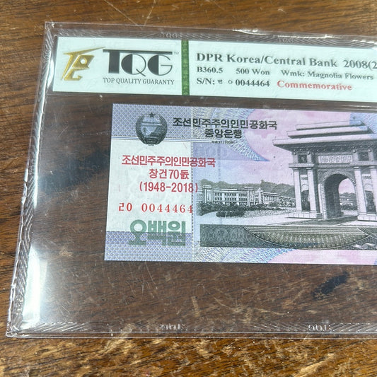 DPRK CENTRAL BANK GEM UNC Exceptional Paper Quality 500 Won 2018 70th Anniversary DPRK Commemorative TQG 66 PPQ