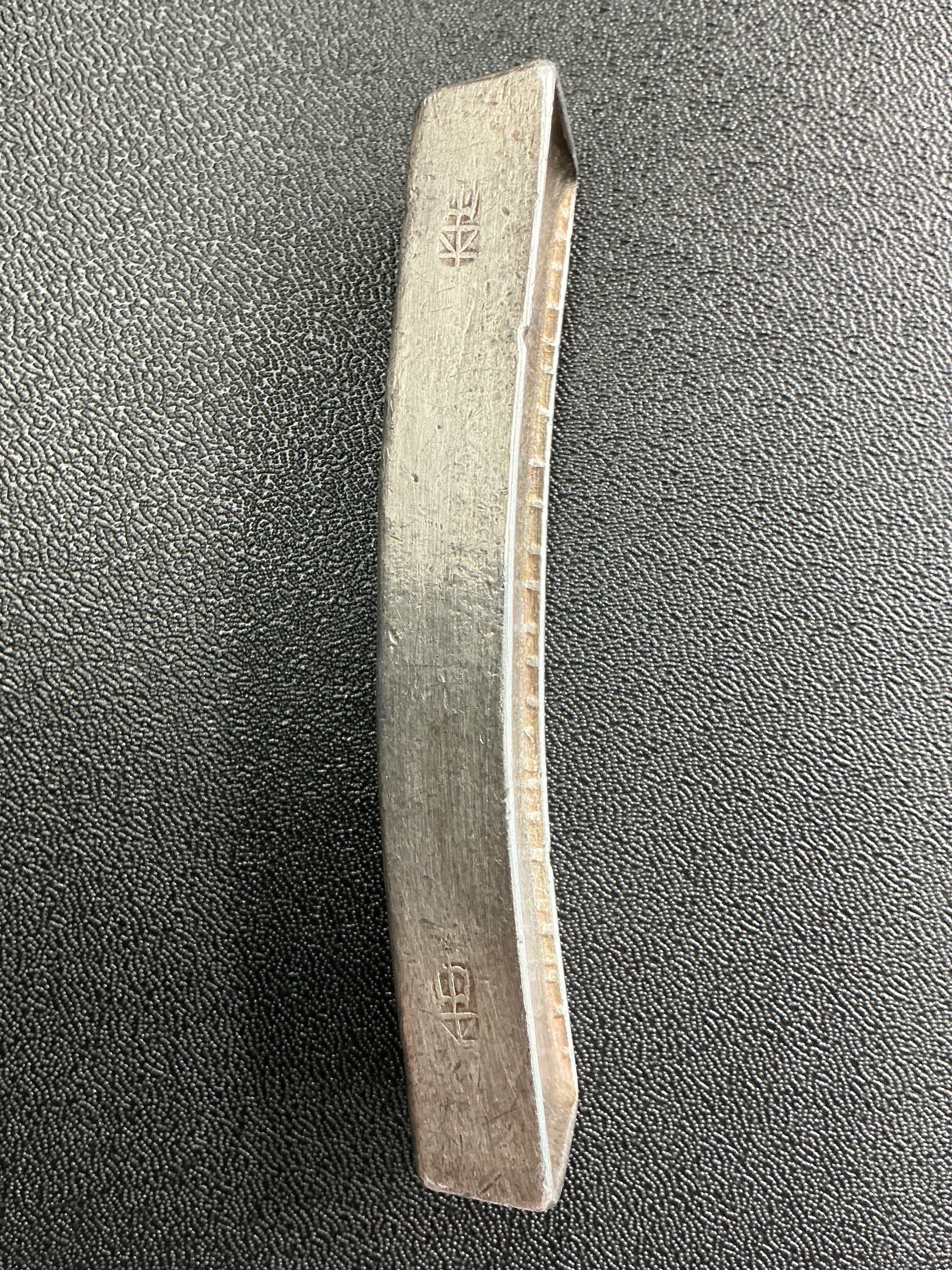 An awesome 10 lang/tael banana bar out of Annam/ Vietnam! This piece likely dates to the mid-late 1800s, potentially up to the early 1900s and weighs 370.4g. These types of bars were cast privately by silver merchants, and circulated as high denomination currency in Southeast Asia and parts of China during the 19th and early 20th century! An incredible piece of antique silver carrying a lot of history!