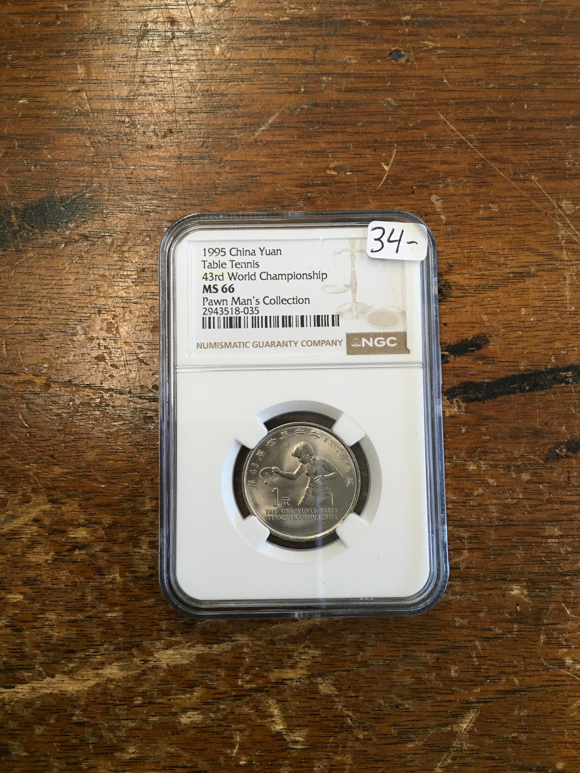 1995 China Yuan Table Tennis 43rd World Championship - PAWN MAN’S COLLECTION NGC MS 66