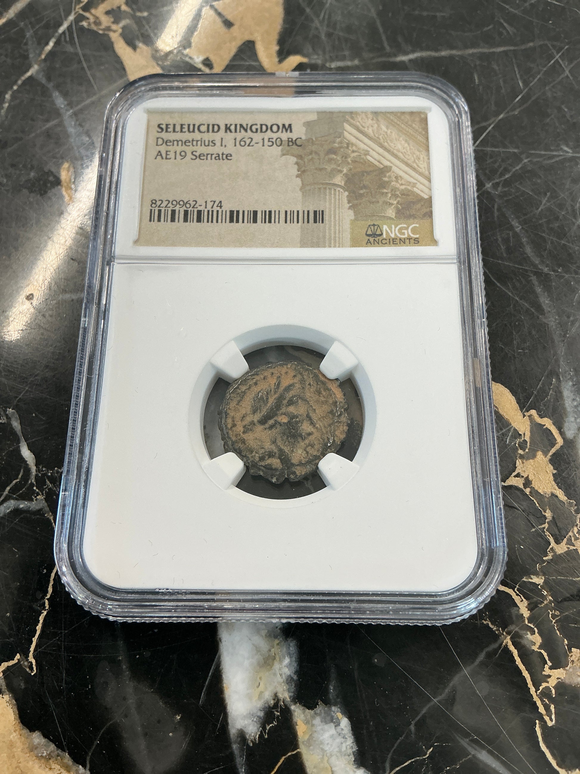 NGC Certified Ancient Coin Seleucid Kingdom, Demetrius I, 162-150 BC AE16 Serrate