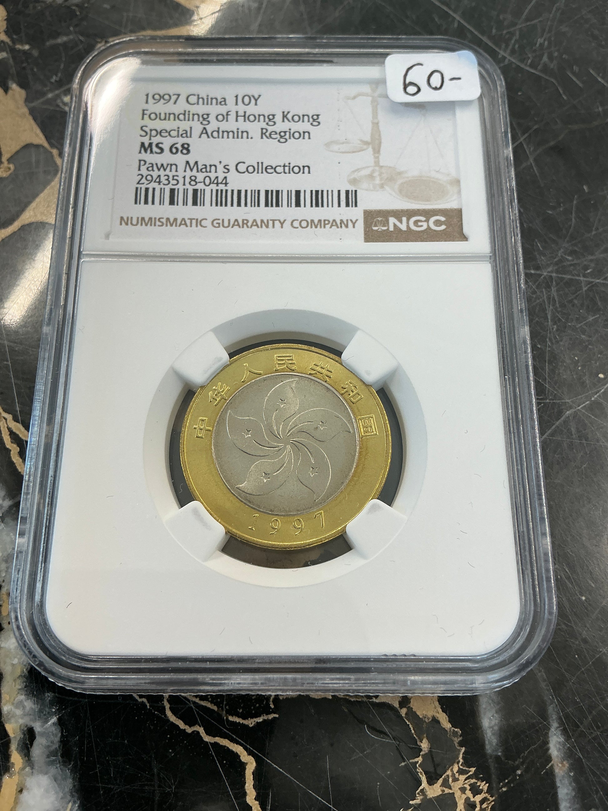 1997 China 10Y Founding of Hong Kong Special Admin Region NGC MS 68 PAWN MAN'S COLLECTION